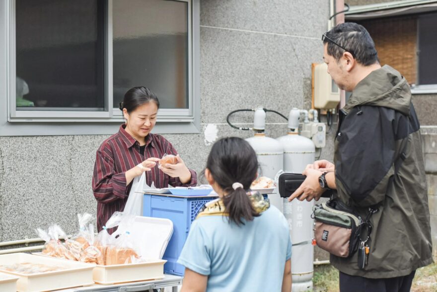 住民同士の交流がメインのため、イベントの規模はなるべく小さくし、地域の日常に溶け込むような場を目指して運営しています。 今回は、パンの販売と同時並行で、ゲストハウス「enoto」の内覧会も行いました。
