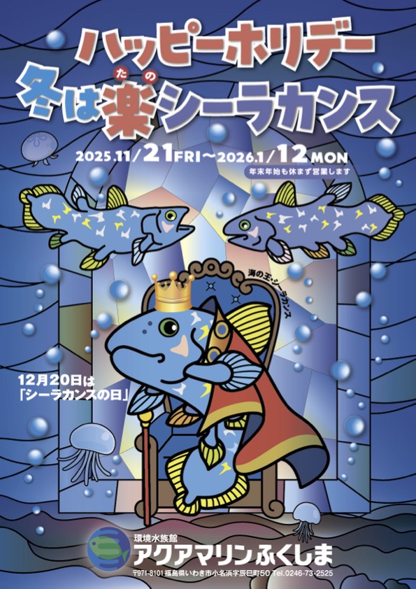 【いわき・アクアマリンふくしま】2025年11月22日(土)~2026年1月12日(祝・月) 「ハッピーホリデー! 冬は楽(たの)シーラカンス」