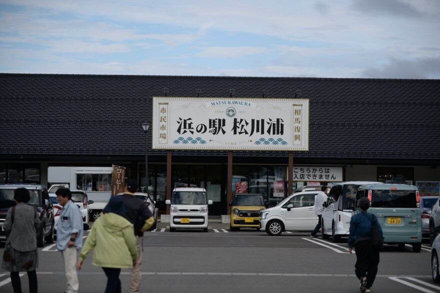 浜の駅松川浦は、相馬市の松川浦にある観光&グルメスポット。震災・原発事故からの復興のため、地域のシンボルとなるべく建設された、いわば復興市民市場。水産物、農産物、お土産物などが所狭しと並べられており、休日ともなると駐車場に停められないほどの車が来場します。