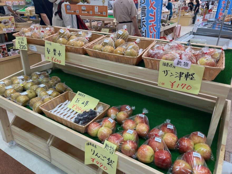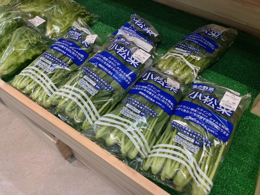 今回のリニューアルの目玉はなんといっても農産物。この日も地元産の葉物野菜や果物が並んでいました。私が行った日は、酷暑続きで収穫量が落ちており、少し販売できる産品が少ないということでしたが、それでも、十分お買い物を楽しめる商品が並んでいました。