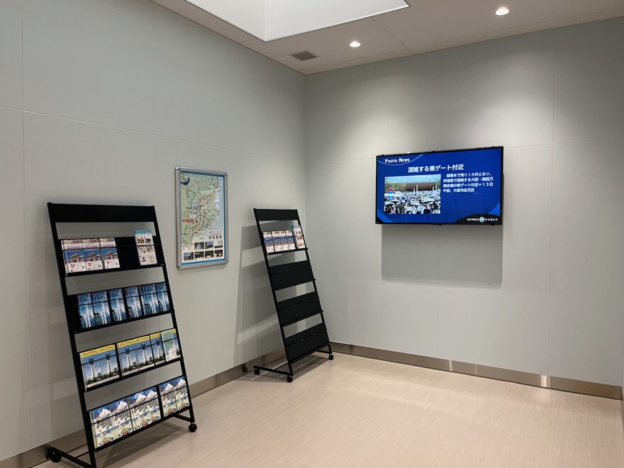 このたびの道の駅の登録を受け、駐車場やトイレが改修され、特に北側のトイレは24時間利用できるようになりました。このトイレには授乳の設備やおむつ交換台もあります。また、道路と観光の情報を発信するコーナーも新たに設置されました。これなら、夜間のドライブの味方にもなってくれそうです。