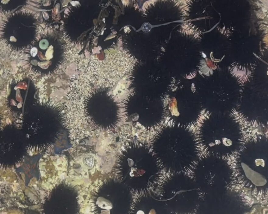 普段は行かないような深さまで歩いていくと、たくさんのウニやヒトデがみえてきました。採鮑組合に所属している方がこのあたりでウニを採っているという話は聞いていたものの、実際に自分の目で見ることで、まちの生業への理解が深まりました。